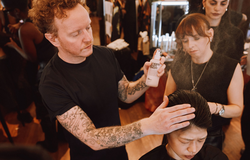 Authentic Beauty Concept styled up a storm backstage at Rory William Docherty SS26 show at London Fashion Week titled 'The Tides'.