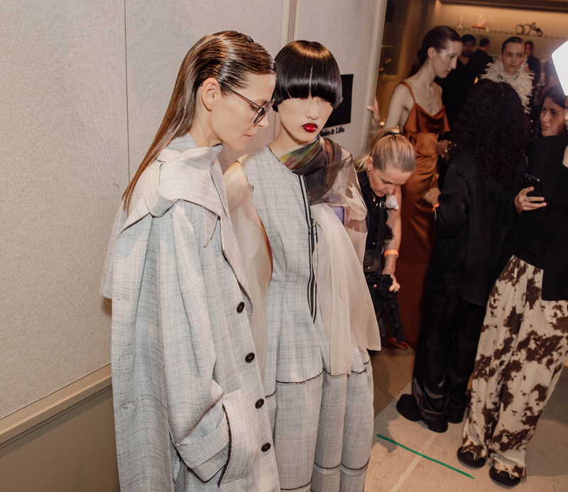 Anna Cofone, Global Creative Advocate for Authentic Beauty Concept explains the hair inspiration for the show: “We wanted the hair to reflect Roksanda’s exploration of form – high gloss shapes with curves and graphic lines that felt both modern and timeless. Using Authentic Beauty Concept’s Cosmic Blow-Dry Jelly we created looks that were fluid yet structured, enhancing the strength of the collection while staying true to Authentic Beauty Concept’s ethos of mindful beauty.”