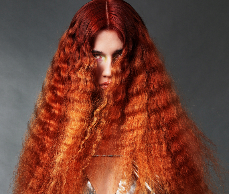 - When using copper shades, it’s important to utilise booster shades – you can dial up or dial down your shades however you want. For the long red hair, I paid particular attention to adding depth at the root, so I added more base. Then working through the lengths, I wanted one copper to have more vibrancy so added more booster and then with the second formulation I wanted it to be lighter, so I chose a shade lighter without booster to add contrast.